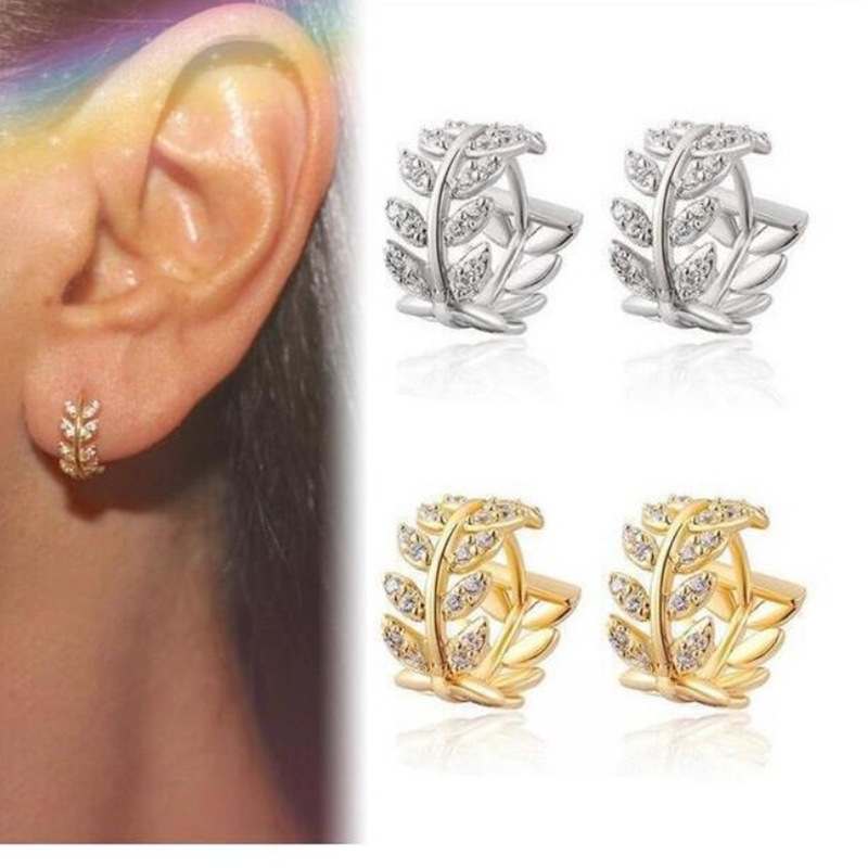 Chenrui Wish Cross-Border E-Commerce New Fashion European and American Style Zircon Leaf Earrings Simple and Elegant Willow Leaf Jewelry