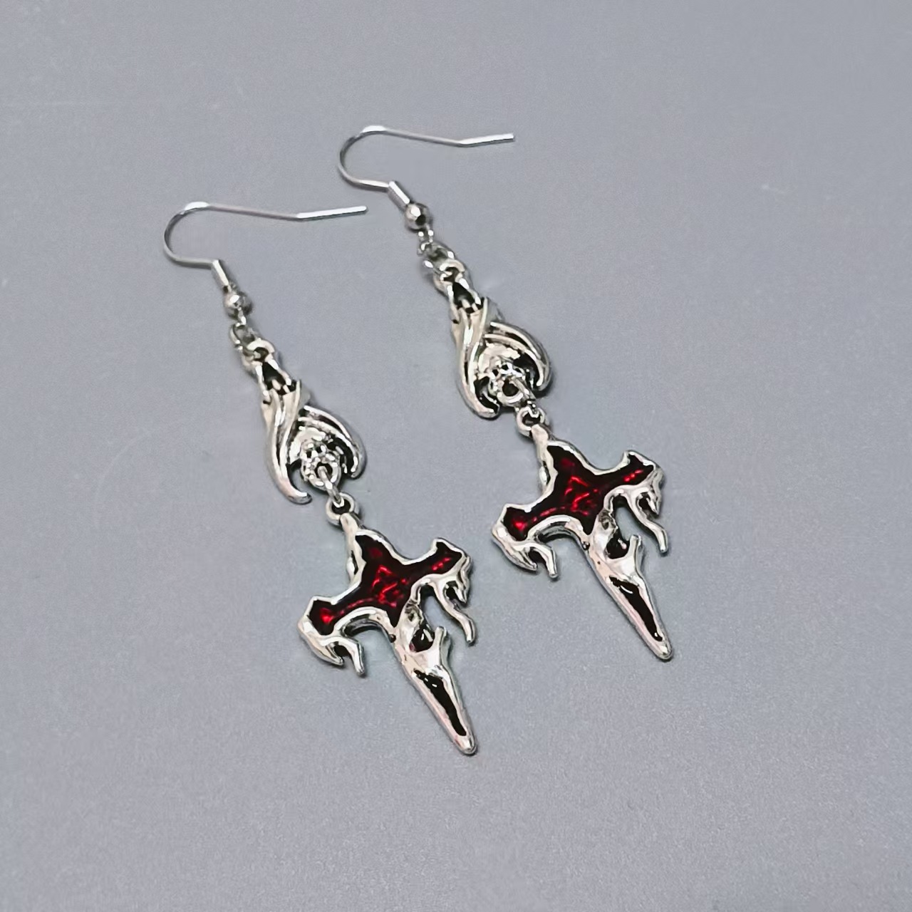 European and American Halloween Dark Gothic Punk Style Coffin Vampire Flame Cross Bat Pendant Earrings for Women