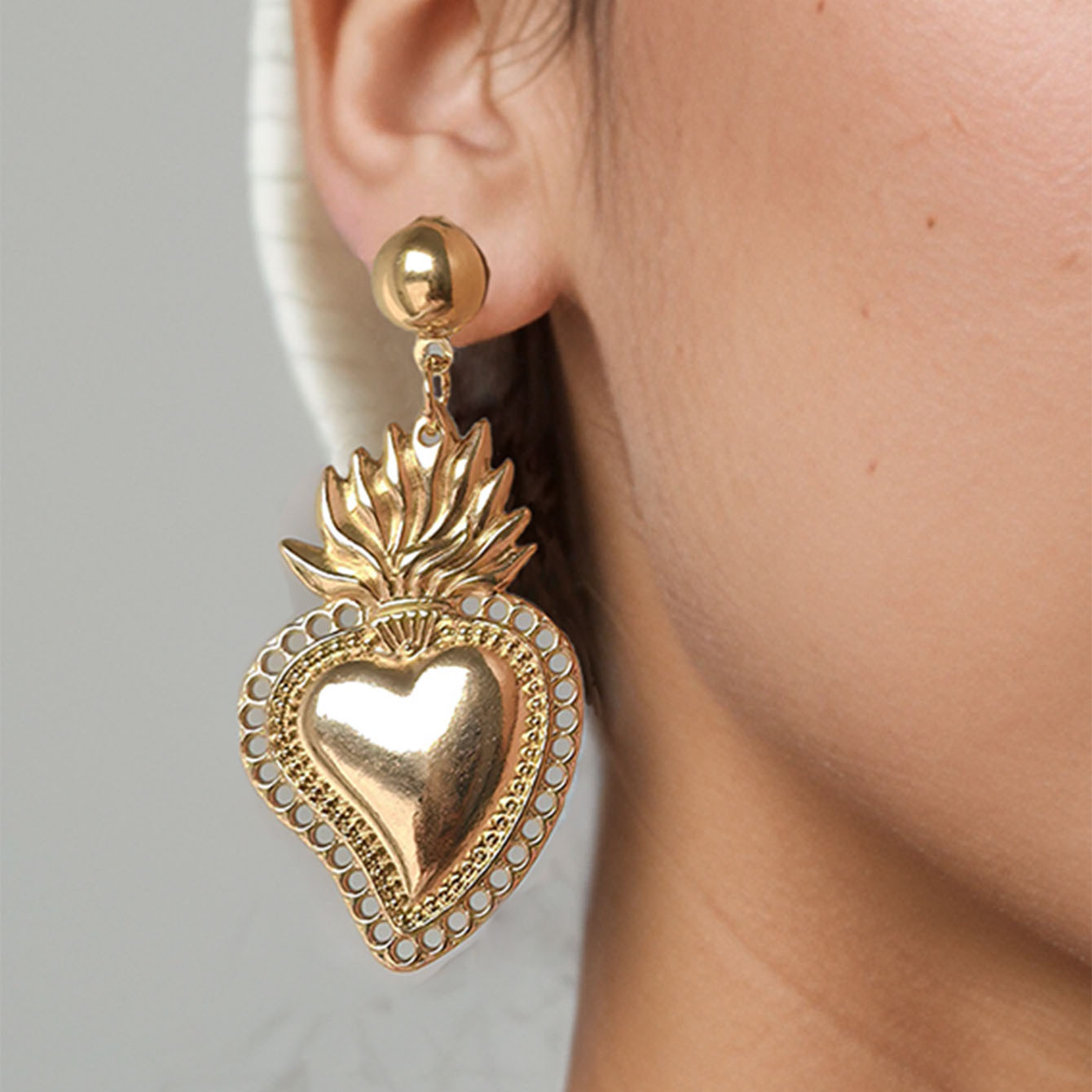 European and American Cross-Border Hot-Selling Retro Gothic Cross Heart Earrings Simple Ins Baroque Rose Branch
