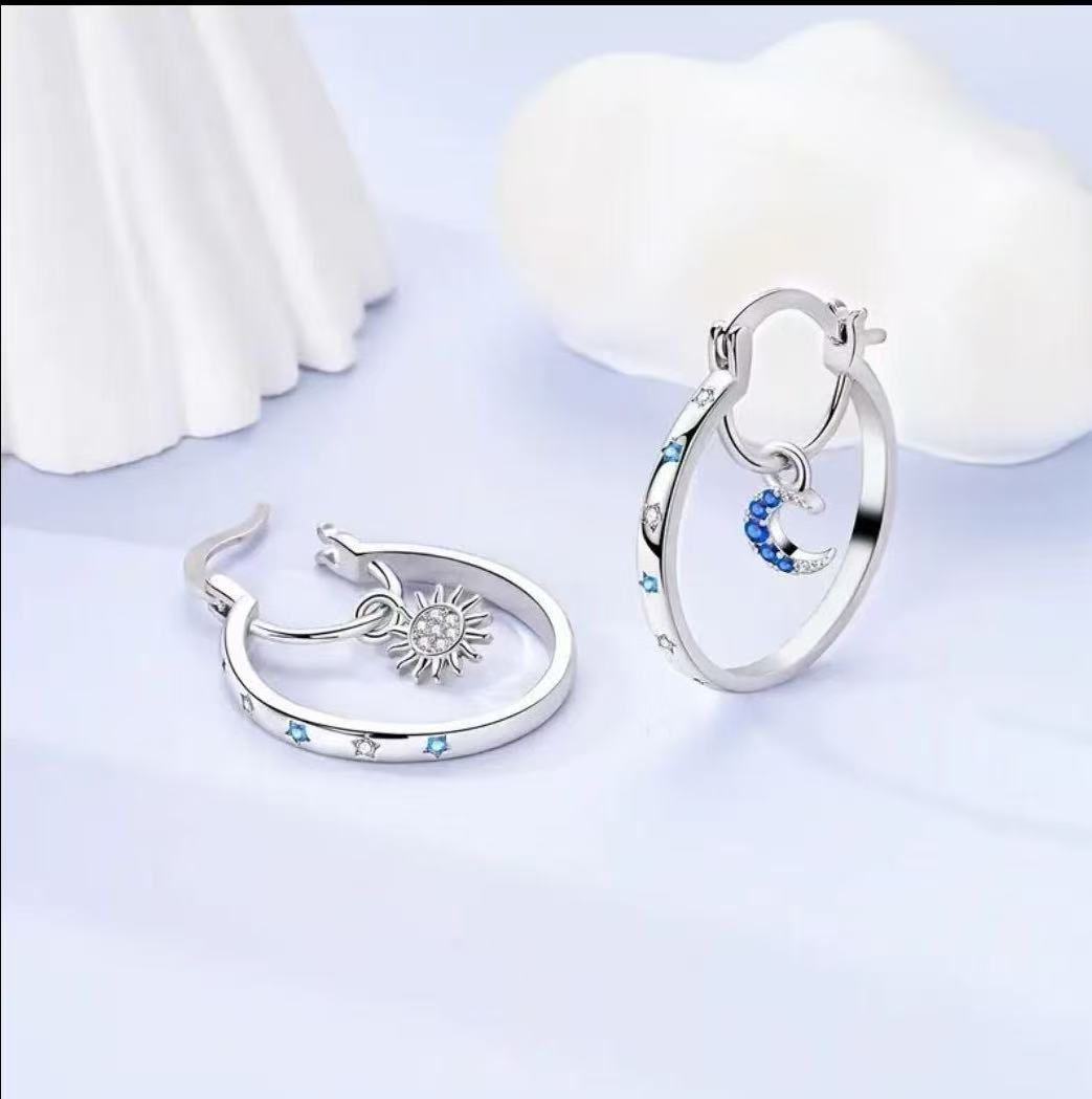 European and American Cross-Border New Double-Layer Earrings for Women, Exquisite and Fashionable Star and Moon Earrings with a Sense of Design, Popular Best-Selling Models