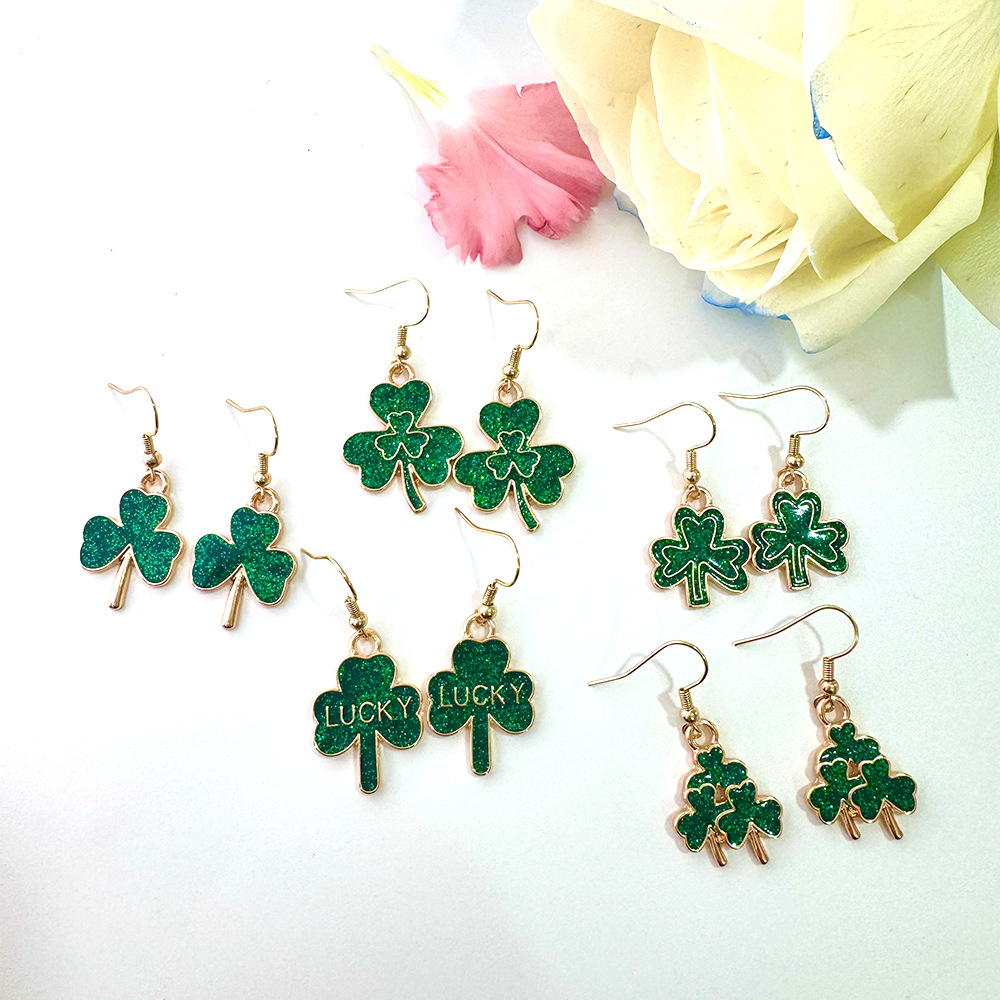 2025 cross-border small fresh green four-leaf clover lucky earrings alloy earrings sparkling jewelry women's earrings