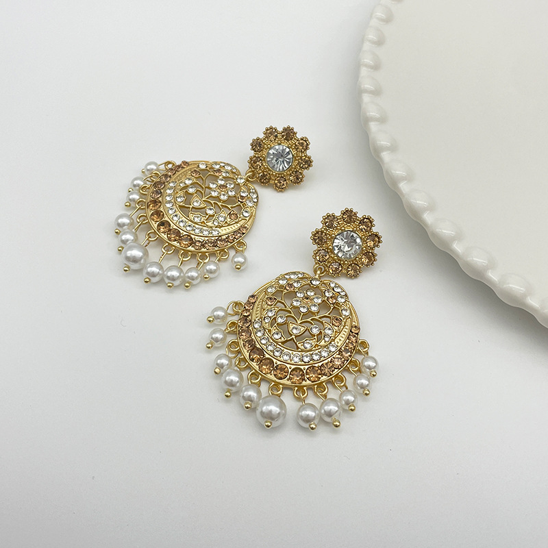 Fashionable retro style exaggerated earrings real gold electroplated gem earrings ethnic style classical drop-shaped palace style earrings