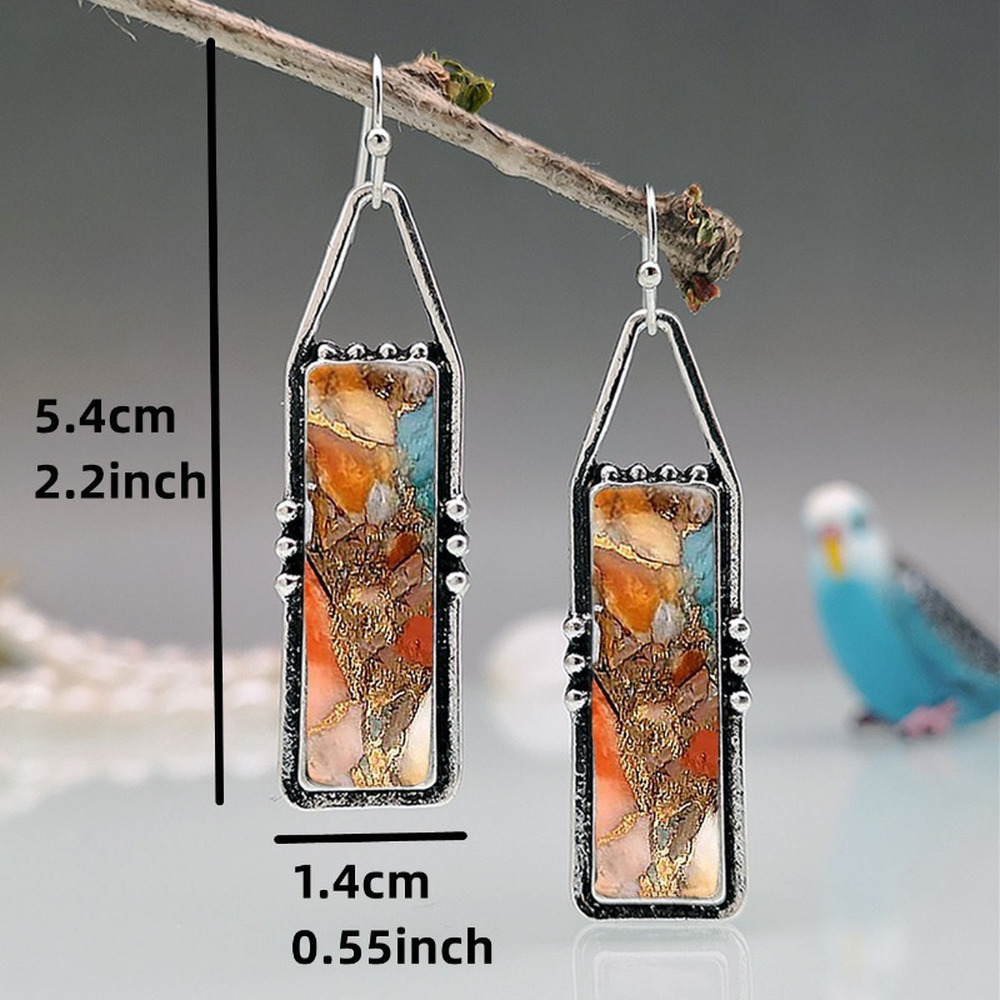 Cross-Border Temu Popular Colorful Bohemian Style Women's Earrings Retro Anti-Turquoise Pattern Earrings Couple Accessories