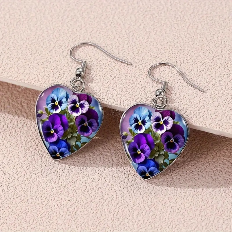 Cross-Border Hot Selling Bohemian Style Heart-Shaped Earrings with Pansy Flower Design Pattern