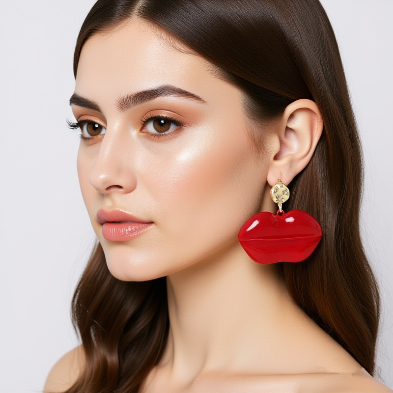 European and American Exaggerated Red Lip Earrings, Personalized Niche, Non-Colliding High-End Earrings, Women's Fashion Cross-Border Supply Wholesale