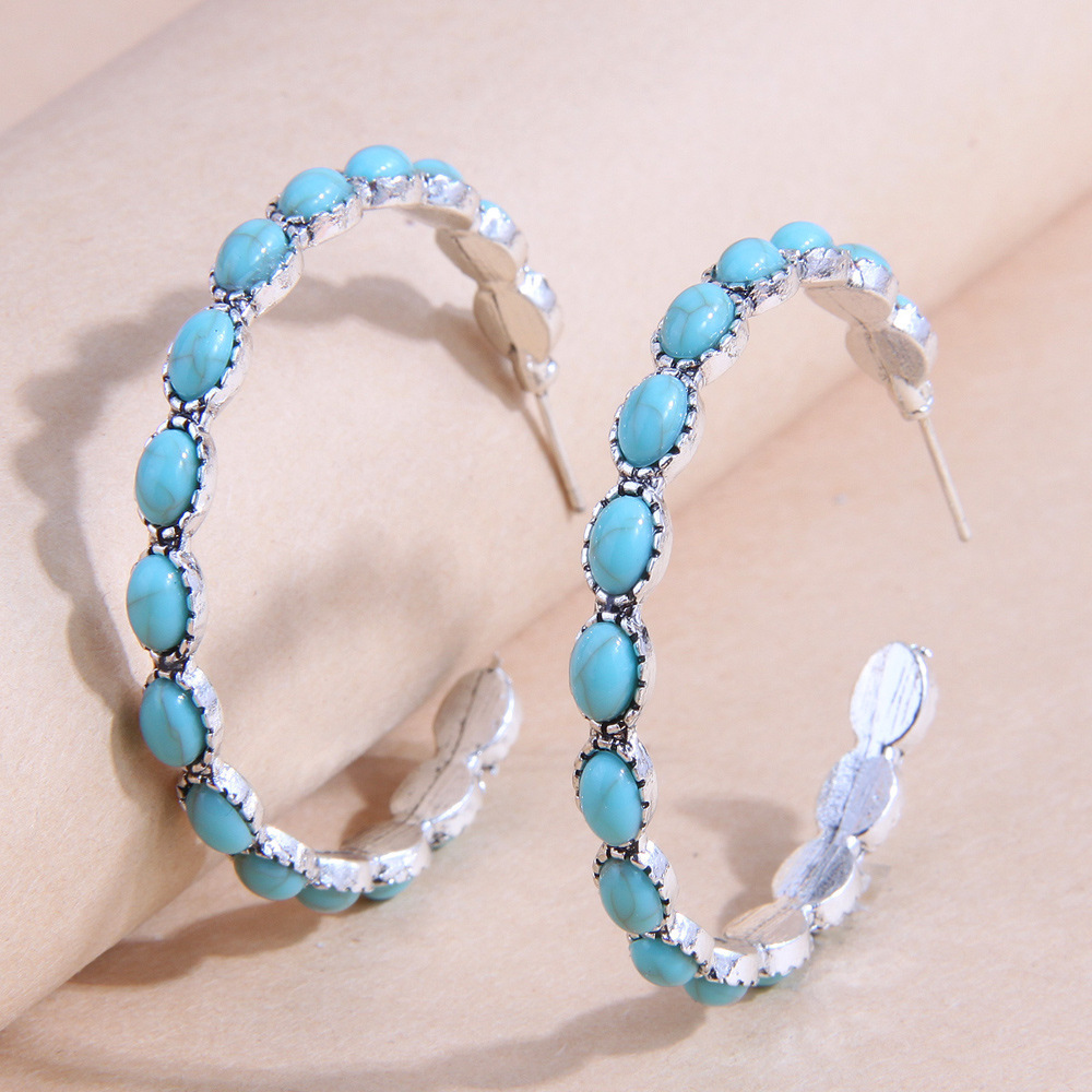 European and American Exaggerated Earrings, Retro Oval Turquoise Drop-Shaped Cut Out Earrings, Earrings, Export Jewelry Wholesale