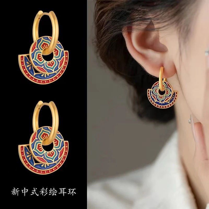 New Chinese Retro Earrings High-End Ethnic Fashion 2025 Internet Celebrity Enamel Trendy Personality Ear Cuffs Earrings