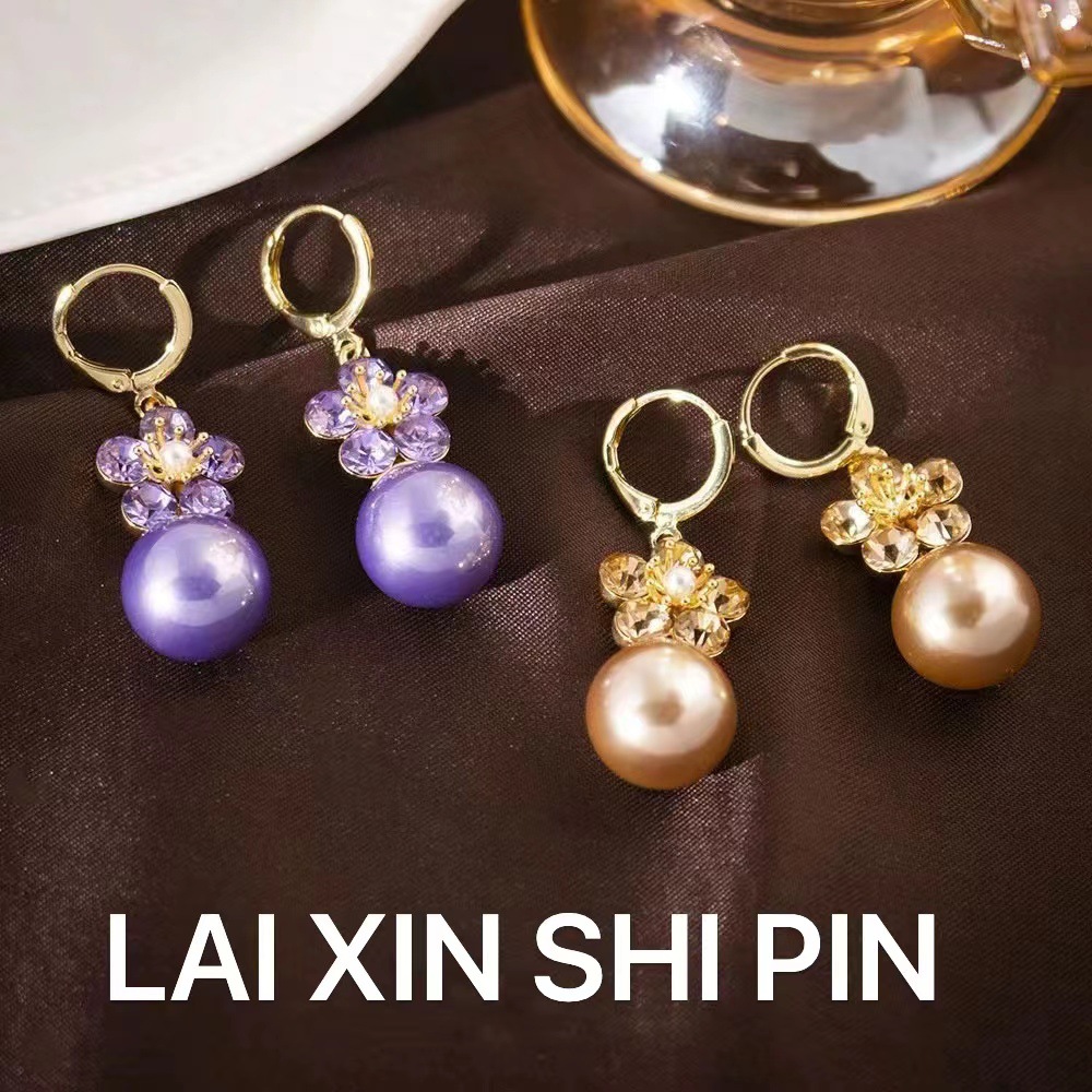 High-End Fashion Champagne Color Zircon Flower Pearl Earrings Elegant Temperament New Earrings Versatile Earrings Wholesale