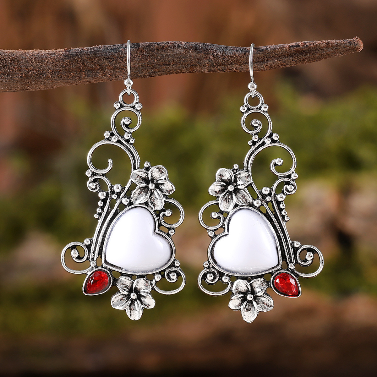 European and American Cross-Border Retro Tassel Diamond-Encrusted Earrings, Bohemian Vintage Women's Heart Cross Pendant Jewelry