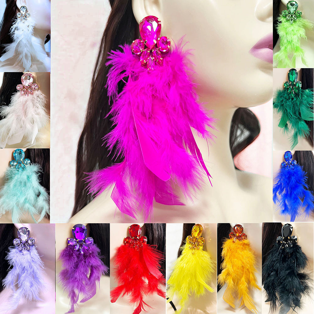 Super Fairy Long Feather Earrings, Fashionable and Personalized Earrings, Alloy Diamond-Encrusted Artistic Tassels, Bohemian Style