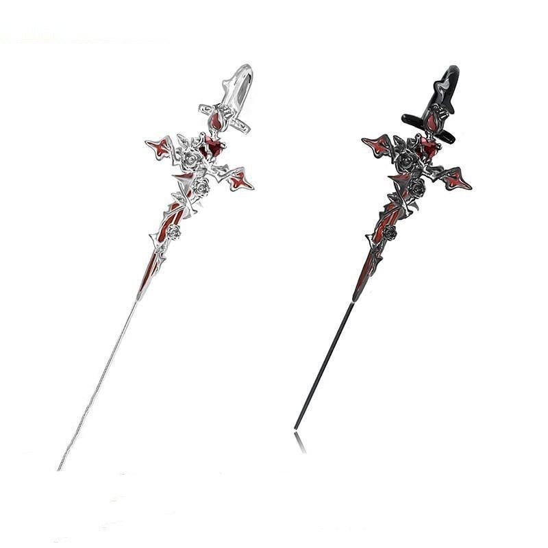 Original Design Thorn Series Trendy Cool Cross Piercing Earrings Niche Dark Spicy Girl Earrings