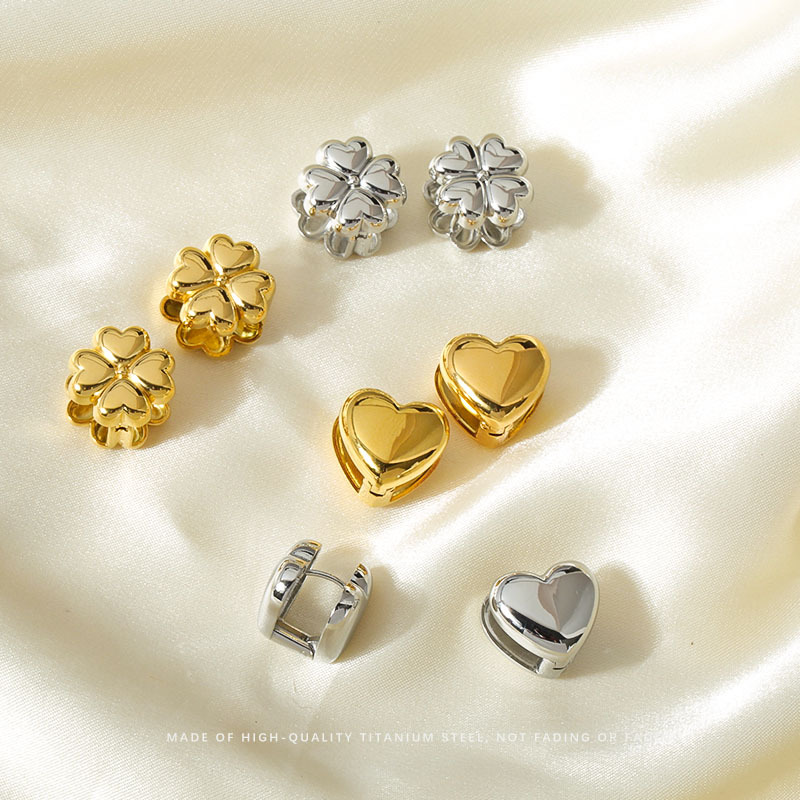 Stainless Steel Gold Bow Heart Fashion Earrings for Women, Light Luxury Niche High-End Titanium Steel Earrings for Autumn and Winter