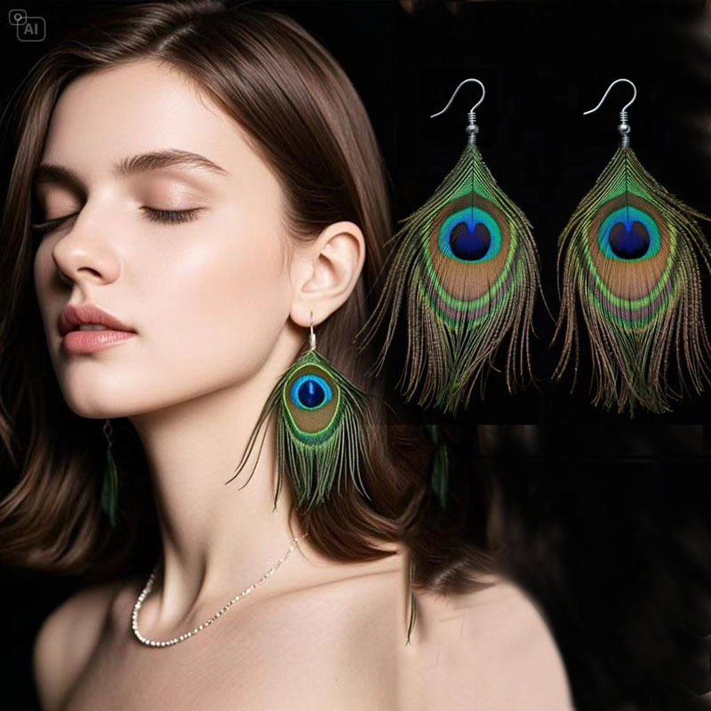 Ethnic Style Peacock Feather Earrings Festival Ancient Town Tourism Vacation Bohemian Natural Peacock Feather Tassel Earrings