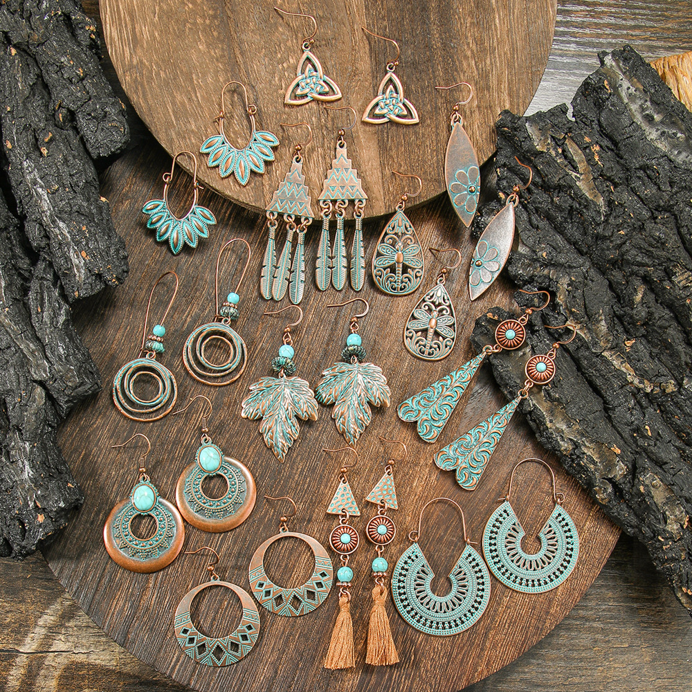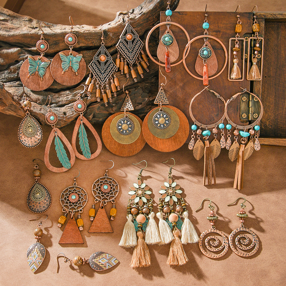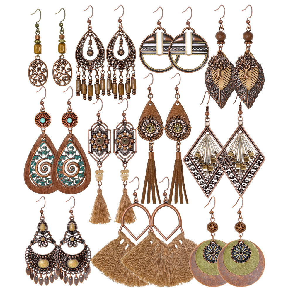 Explosive Retro Ethnic Style Earrings suit Women's Bohemian Elegant Tassel Earrings Geometric Personality Accessories Yiwu