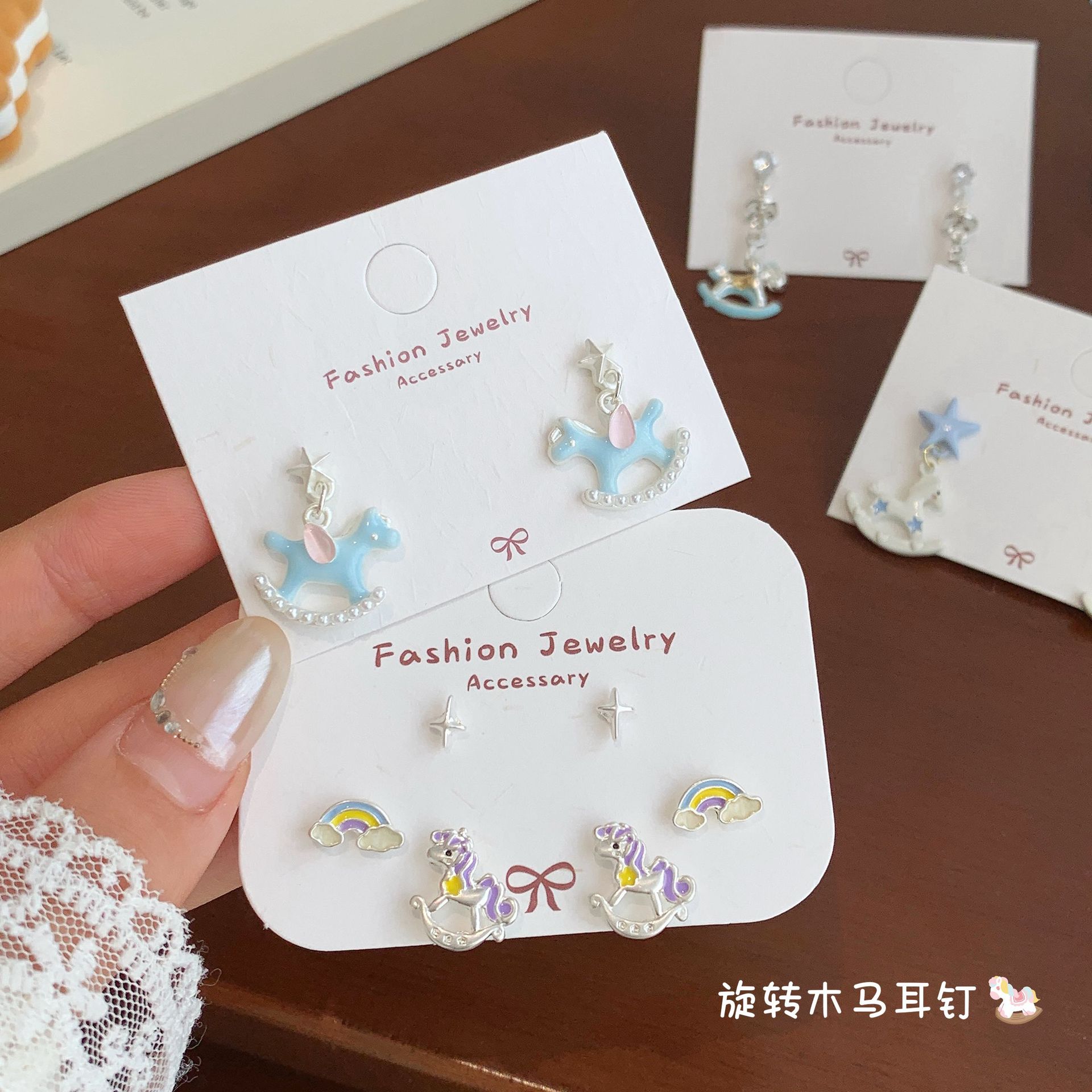 Cartoon Alloy Oil Drop Carousel Earrings Collection Women's Silver Needle Unicorn Pendant Year of the Horse Zodiac Earrings