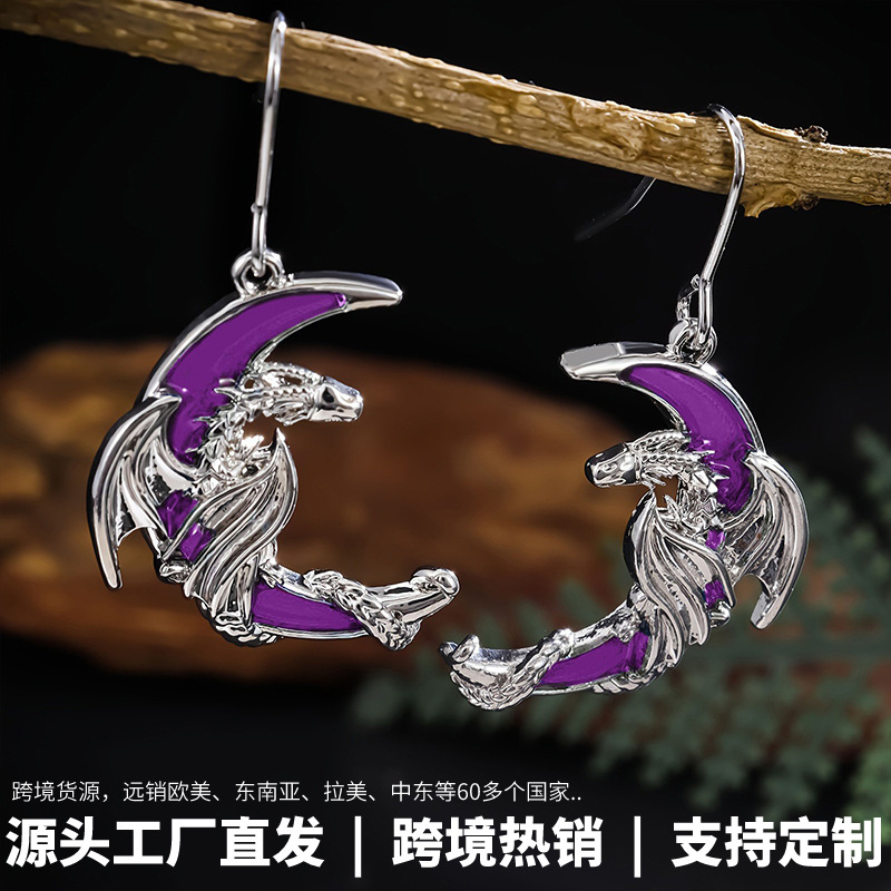 Long Rui cross-border hot personality design dragon moon earrings hip-hop party fashion accessories manufacturers wholesale