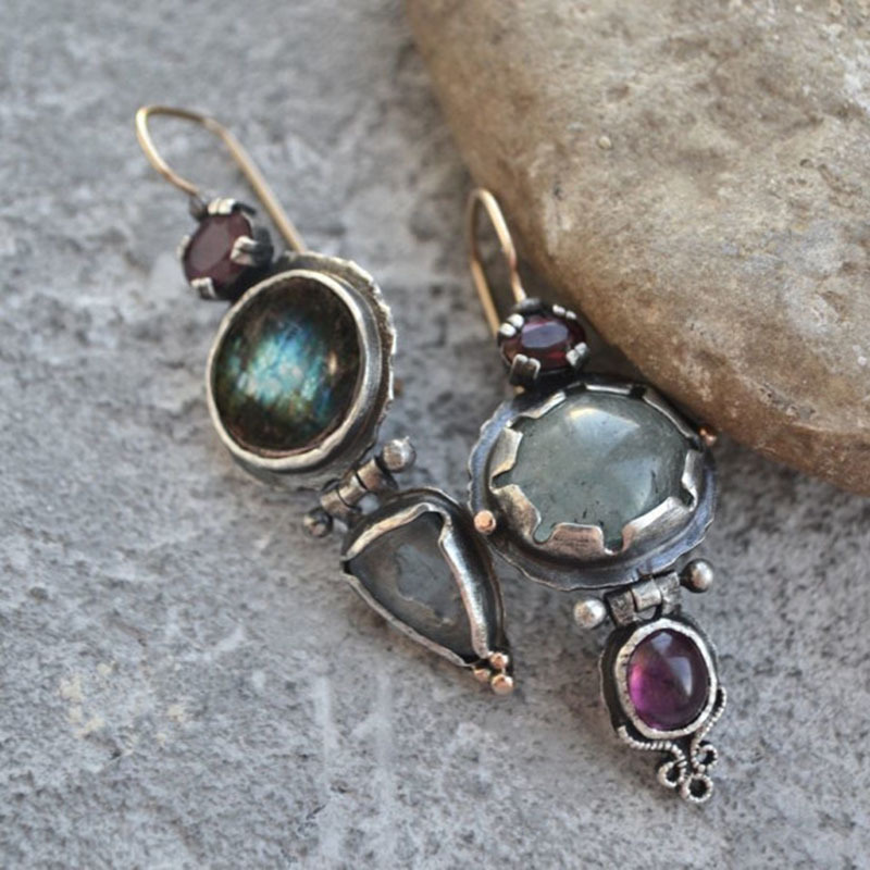 Women's retro asymmetric earrings creative foreign trade jewelry inlaid multi-color gem earrings AliExpress wish