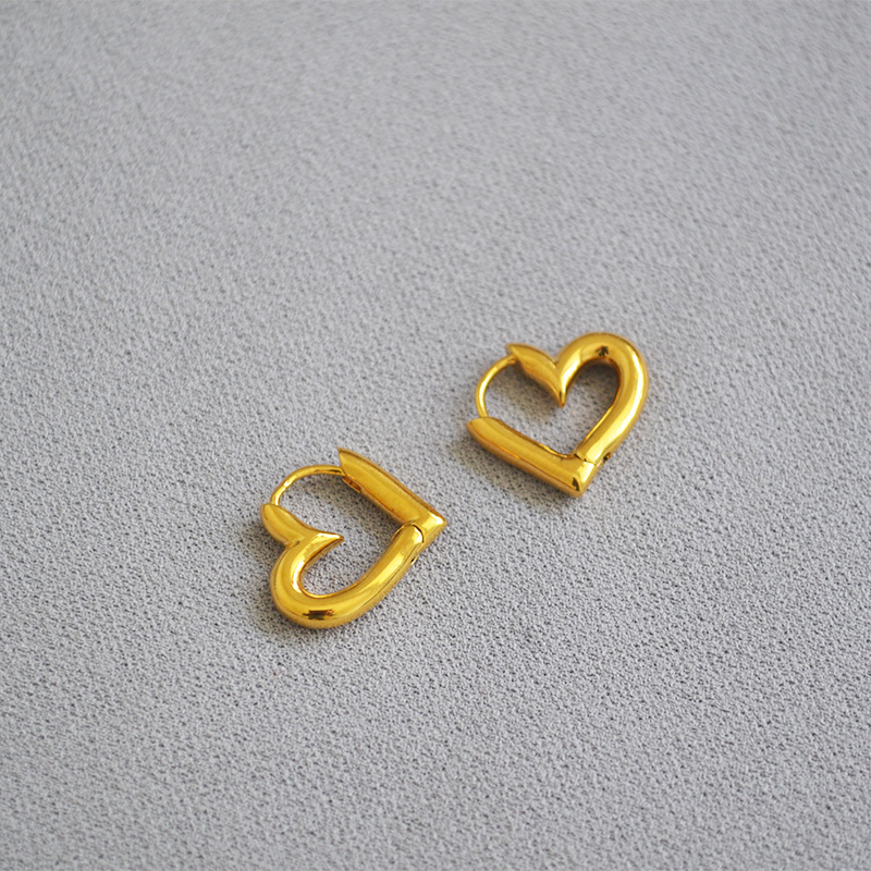 Korean style fashionable simple exquisite brass electroplated real gold hollow heart-shaped love ear buckle earrings trendy women's earrings