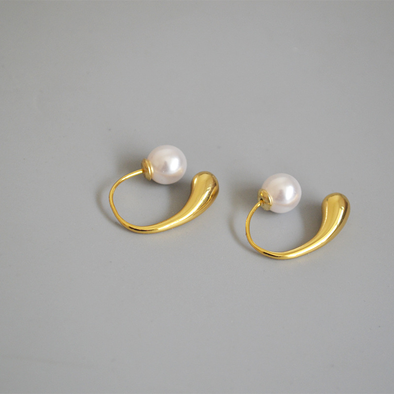 French elegant exquisite brass gold-plated small water drop imitation pearl detachable cold temperament ear hook earrings earrings