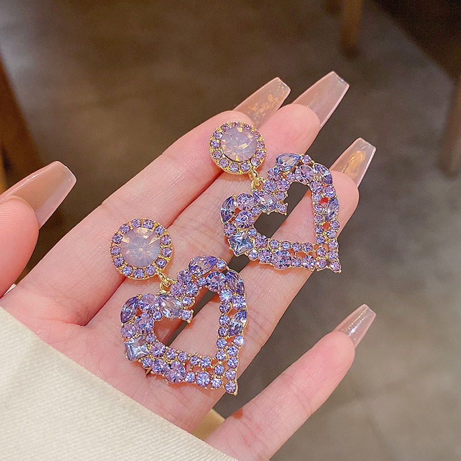 New Japanese and Korean Style Expensive Purple Super Flash Color Diamond Earrings Women's Super Fairy All-match Elegant Internet Celebrity Sweet Earrings Ear Jewelry