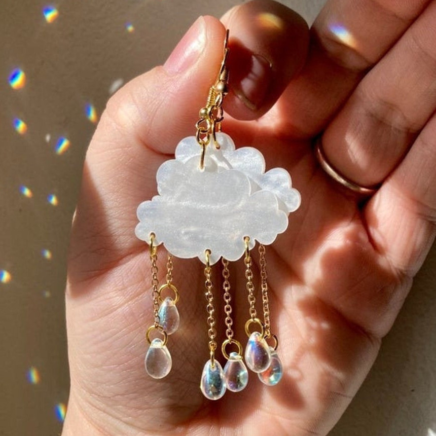 Foreign trade Amazon L crystal teardrops rain cloud handmade acrylic rain cloud earrings factory direct