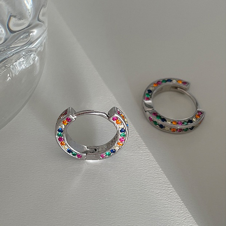 S925 Silver Pin Ear Buckle Korean Advanced Simple Circle Diamond Rainbow Design Joker Color Fashion Ear Order Wholesale