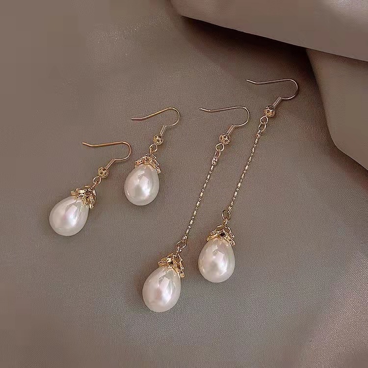New Pearl Water Drop Elegant Earrings Vintage Personalized Simple All-match Long Fashionable Trendy Earrings Earrings