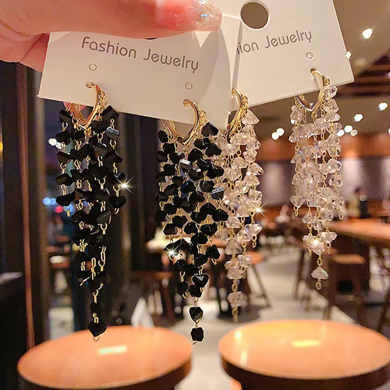 Super Fairy Crystal Tassel Earrings for Women, Long Crystal Earrings, New Trendy Internet Celebrity Elegant, High-End Accessible Luxury Earrings for Women