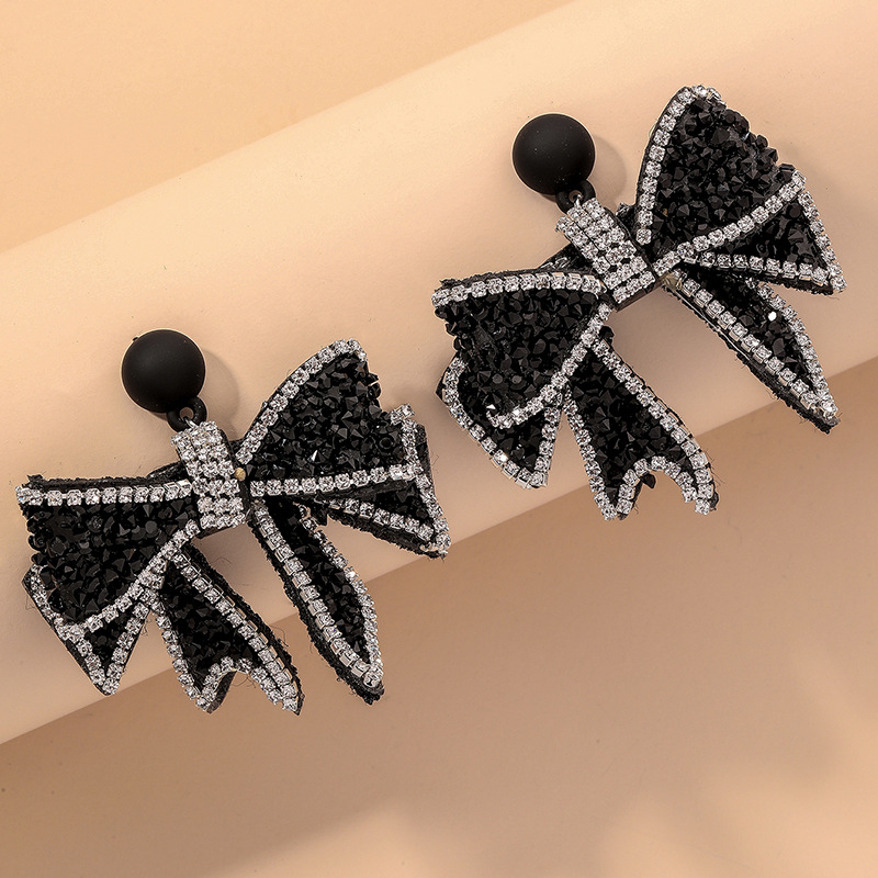 Silver Needle European and American Black Fashion Flash Diamond Bow Earrings Retro Exquisite Temperament High-end Earrings Earrings for Women