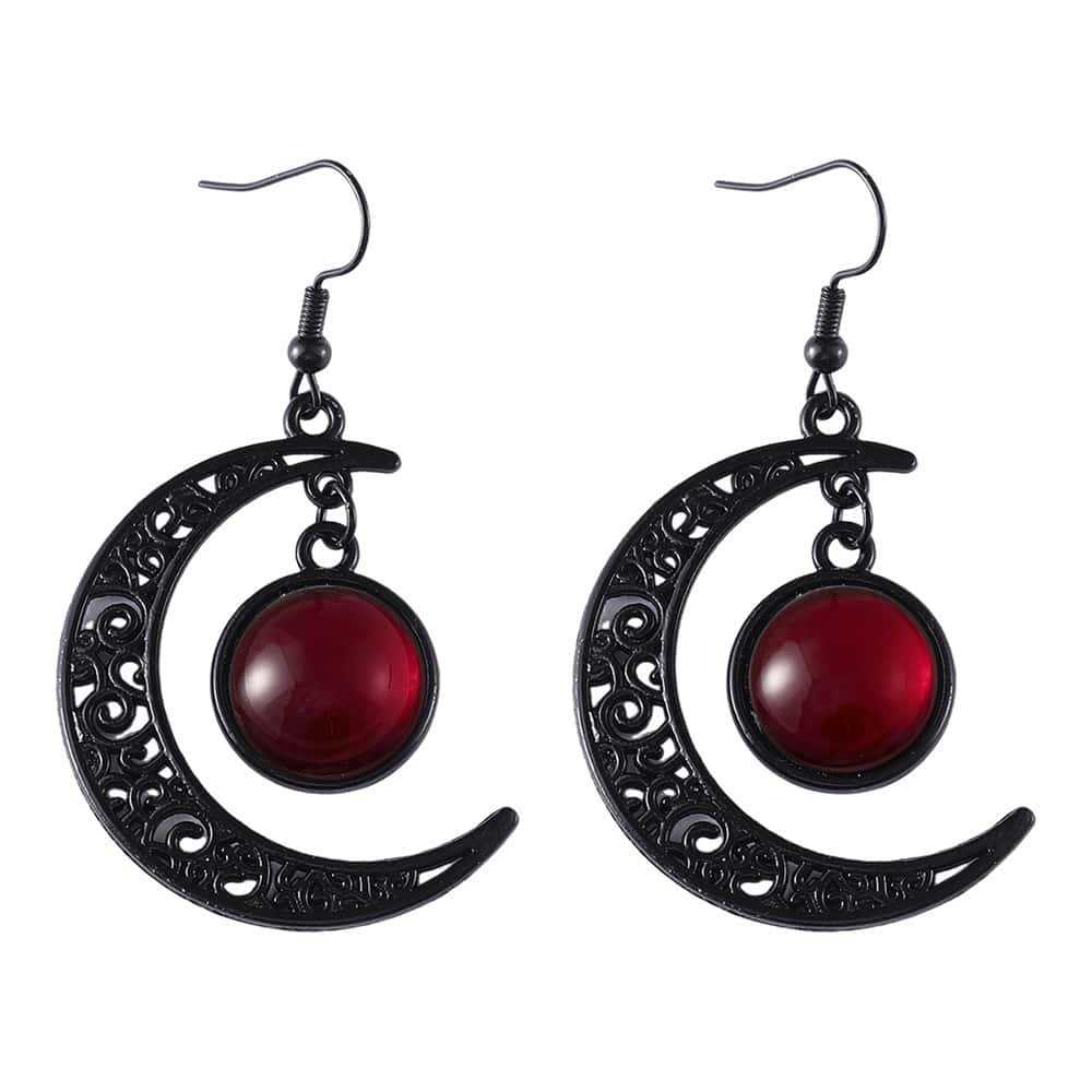 Amazon Best Selling Halloween Hollow Black Moon Long Tassel Gemstone Earrings Personalized Gothic Earrings Wholesale