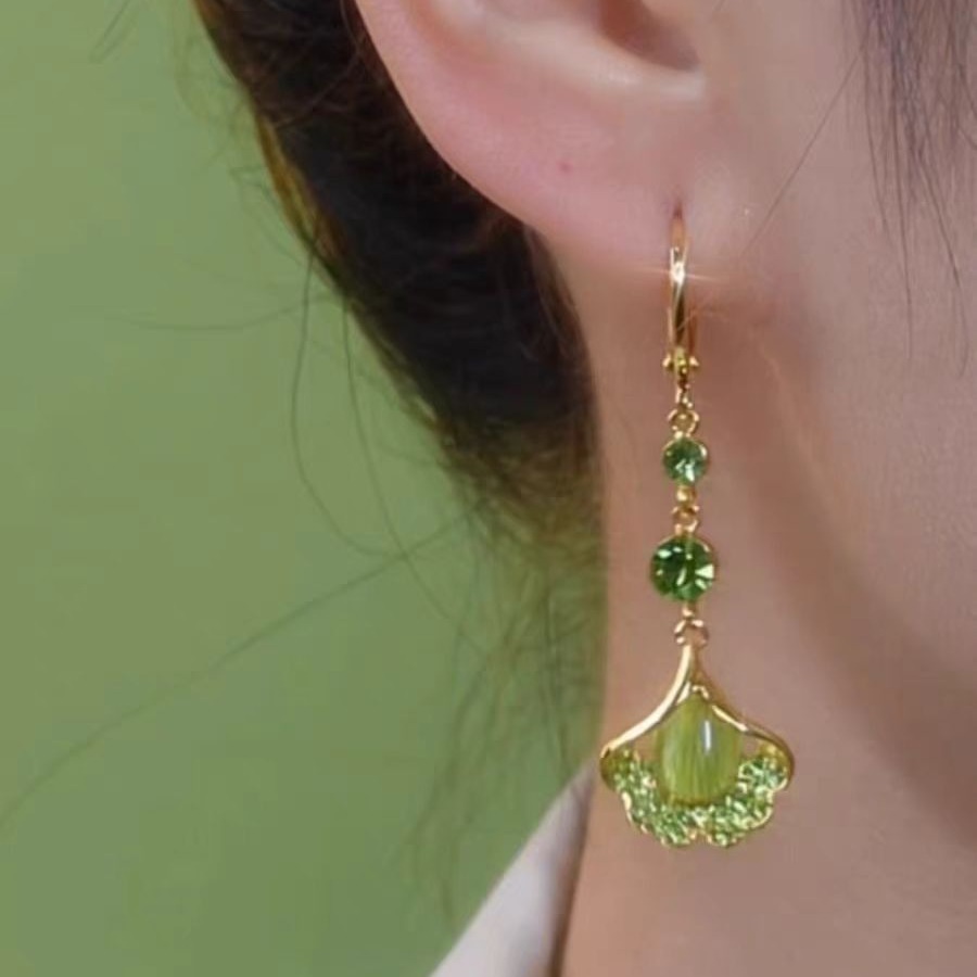 Light Luxury High-end Green Ginkgo Leaf Long Tassel Earrings Fashion Elegant Internet Popular Spring and Summer New Earrings