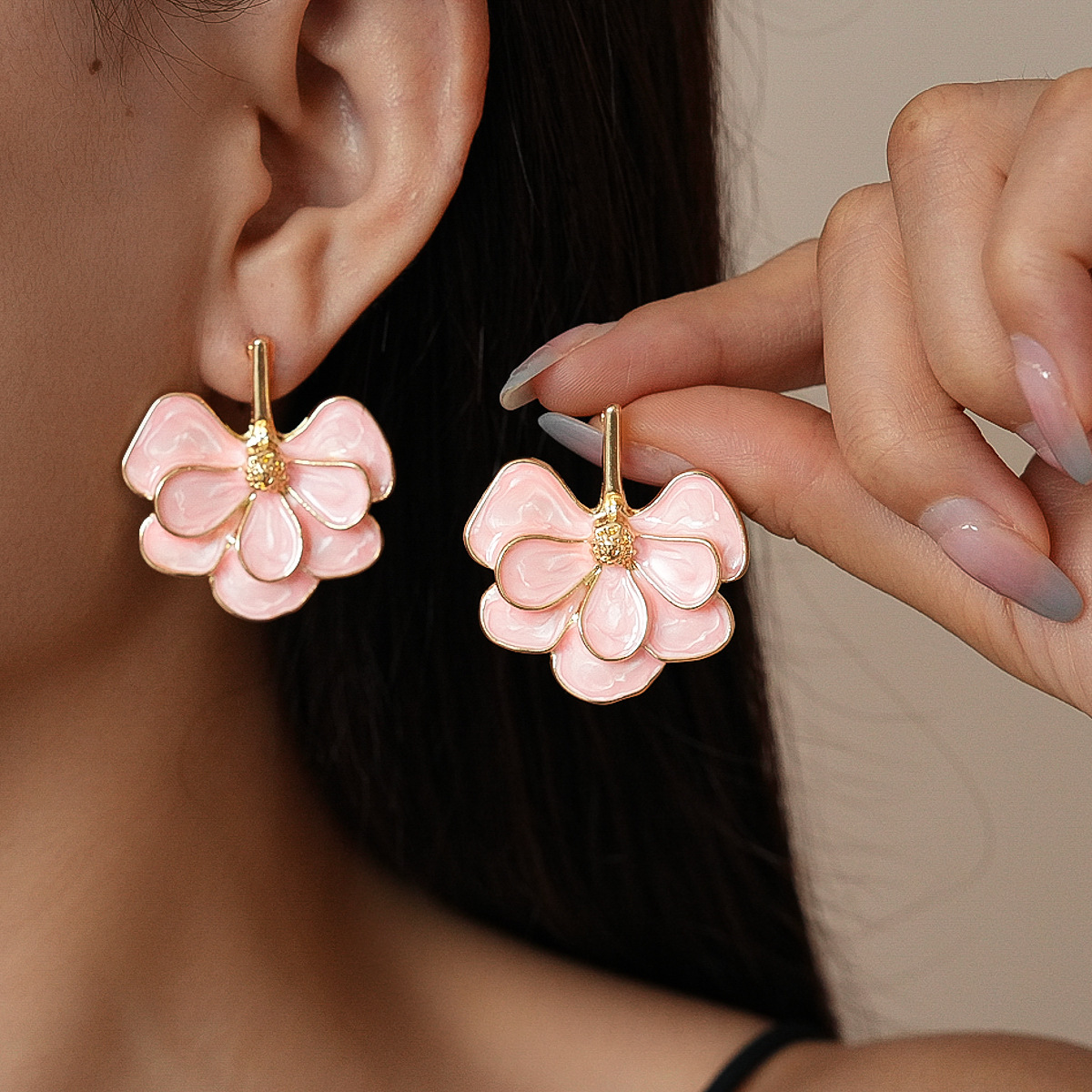 2025 New Style Fresh Three-Dimensional Flower Earrings Light Luxury High-End Dopamine Spring and Summer Versatile Earrings