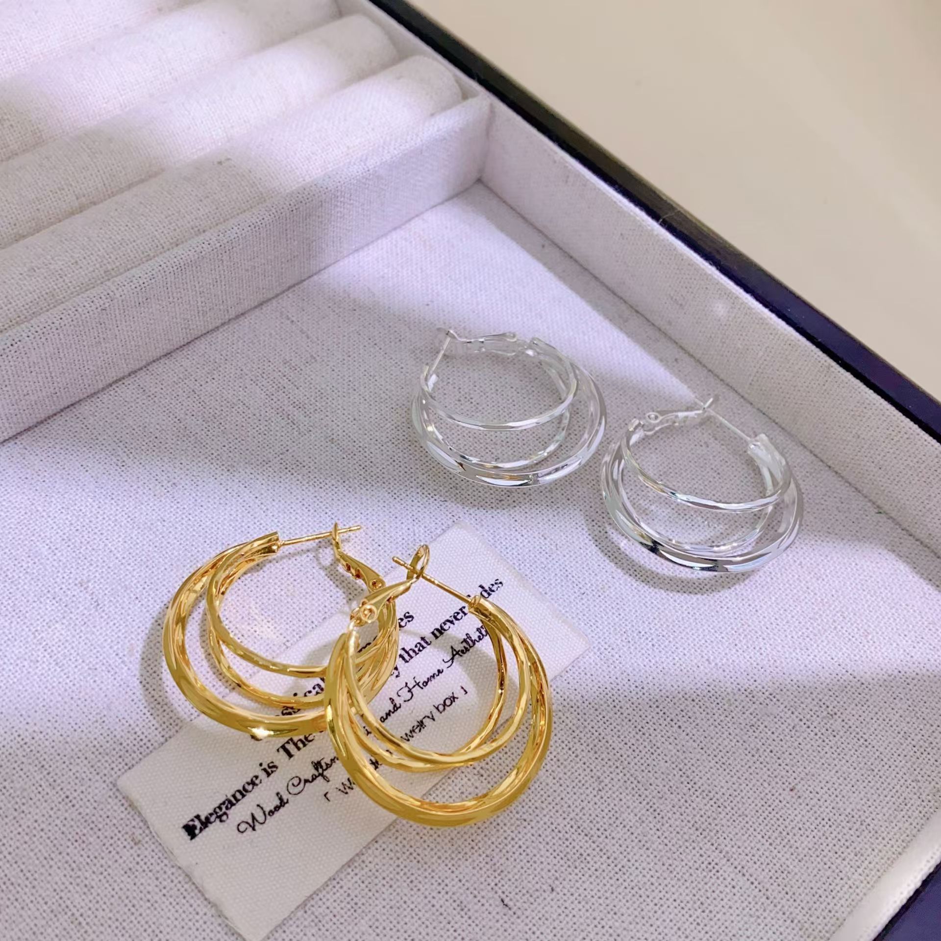 Special Offer New Style Simple Multi-Layered Gold and Silver Versatile Earrings Light Luxury Temperament Niche High-End Design Simple and Exquisite Earrings