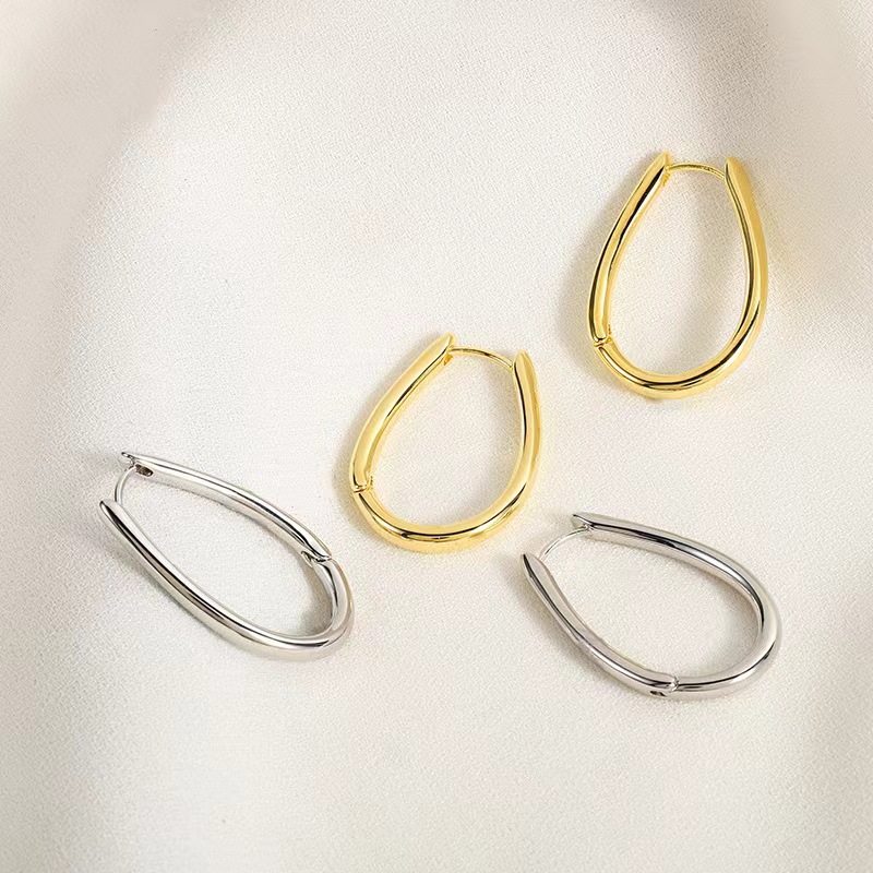 Oval plain ring earrings light luxury high-end temperament French niche design simple atmosphere ring earrings women's earrings