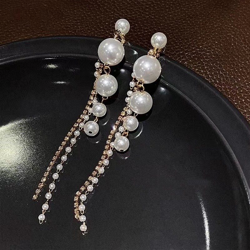S925 Silver Pin Earrings 2024 New Elegant High-end Elegant Internet Celebrity Tassel Light Luxury High-end Pearl Ear Jewelry