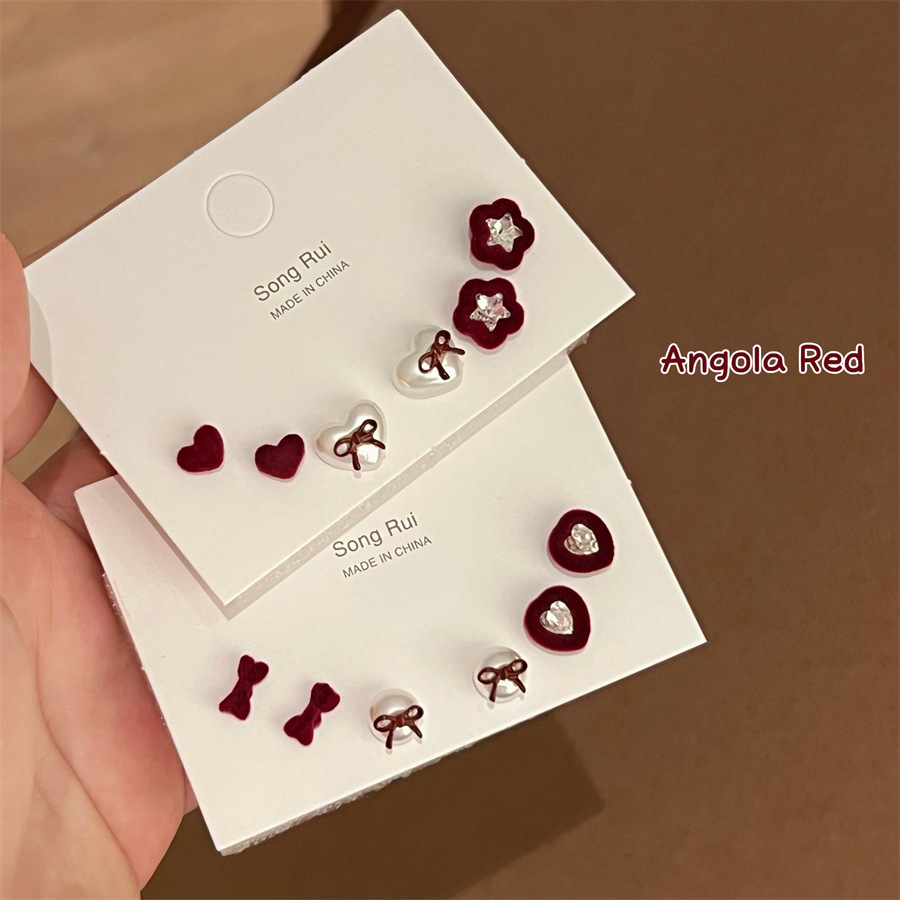 High-grade Black Peach Heart Earrings C- type Earrings Set Combination ins5 Piece Set Black and White Checkerboard Earrings Women