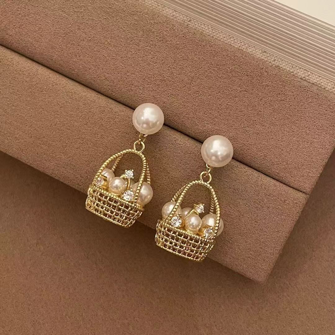European and American CELI brass plated 18K gold pearl ear buckle French light luxury exquisite girl dress up workplace ear jewelry