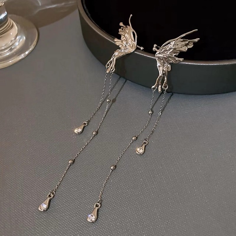 Sweet and Exquisite Crystal Butterfly Tassel Earrings Women's Silver Needle Niche Clouds High-end Light Luxury Simple All-match Earrings