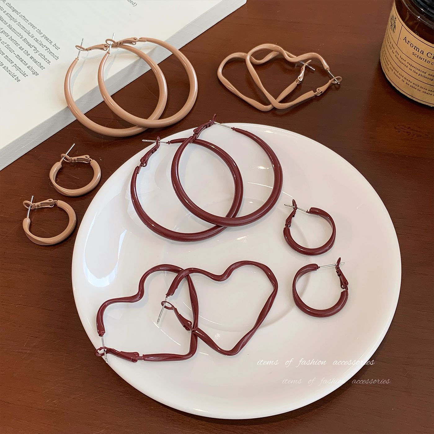 Autumn and Winter Retro Anchor Red Heart Large Hoop Earrings for Women, Silver Needle, Simple and Elegant, Exaggerated Earrings for Square and Round Faces