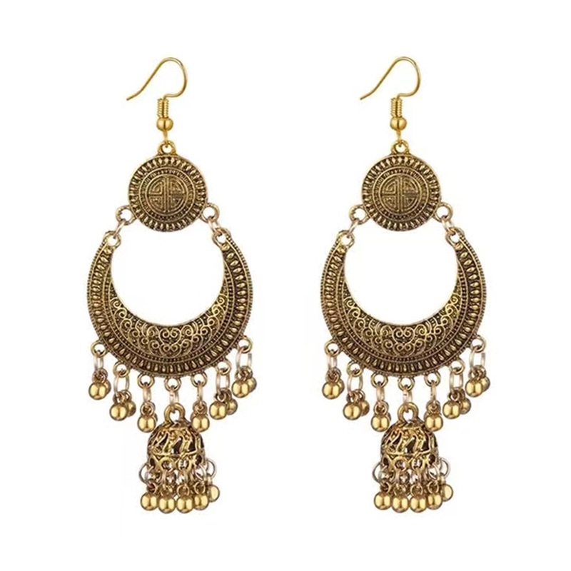 Cross-border SHEIN Fashion Vintage Earrings Ethnic Style Bell Tassel Earrings Bohemian Carved Hot Earrings