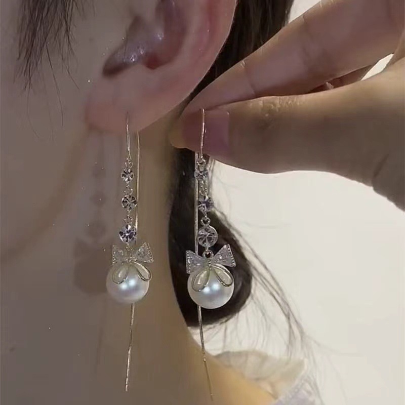 High-End Red Bead Earrings for Women 2025 New Korean Elegant Long Tassel Earrings Popular Ear Wire Earrings