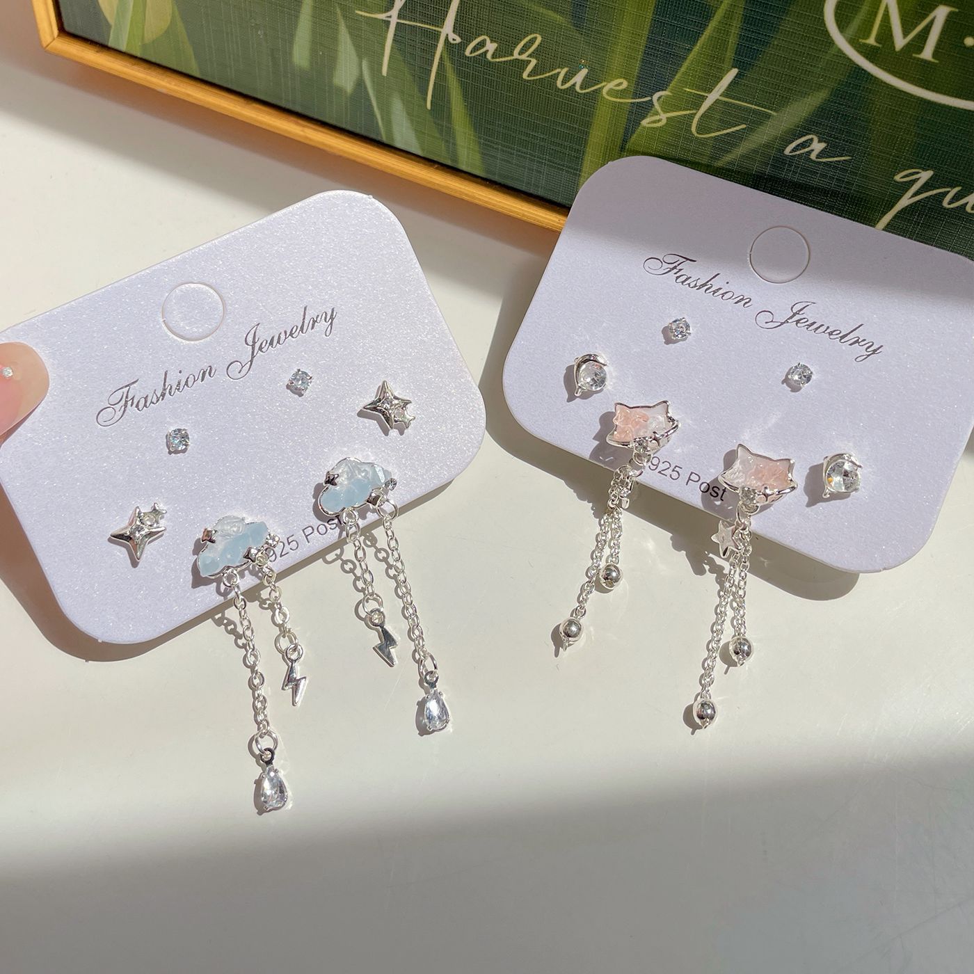 Spring and summer gradient halo butterfly love series earrings suit female silver needle personality color Yiwu earrings wholesale