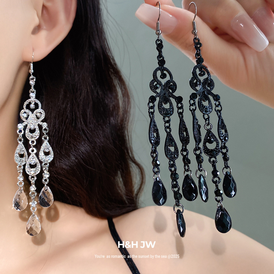 European and American Cross-Border Diamond-Encrusted Water Drop Hollow Tassel Earrings Palace Style Heavy-Duty Earrings Light Luxury High-End Earrings Wholesale