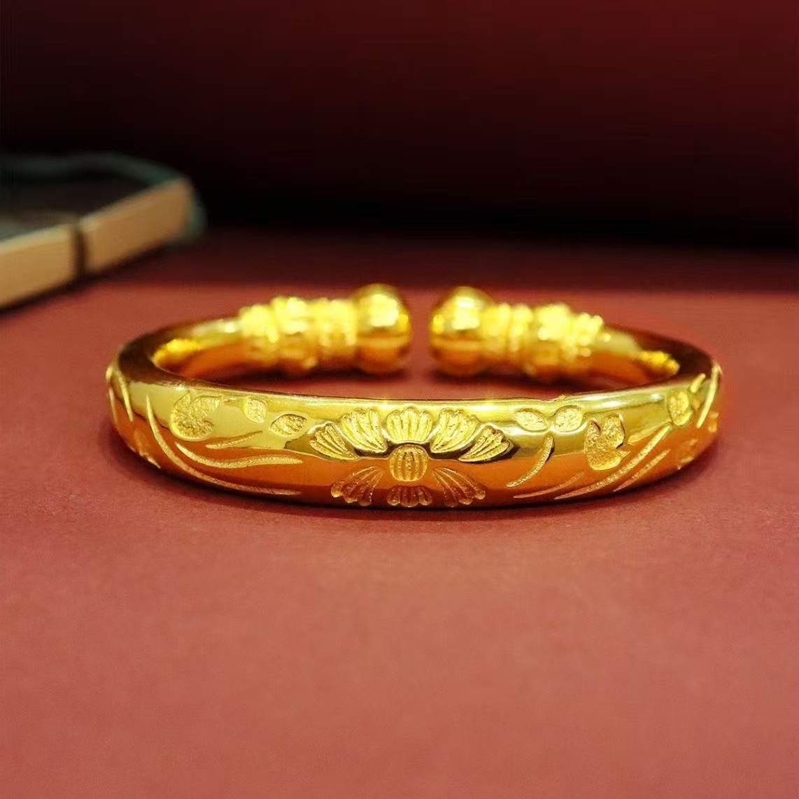 [No fading] Vietnam sand gold bracelet frosted matte texture closed-mouth bracelet yellow gold for mom and girlfriend