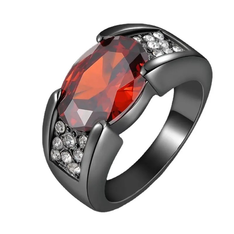 Cross-Border Hot Selling Gun-Plated Black European and American Retro Red Oval Alloy Men's and Women's Couple Rings Exquisite Couple Models Colorful