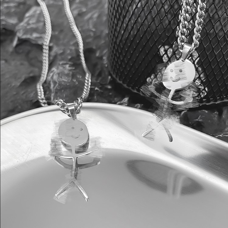New hot-selling funny personalized cartoon graffiti Stickman cute men and women couple cute trendy stainless steel necklace