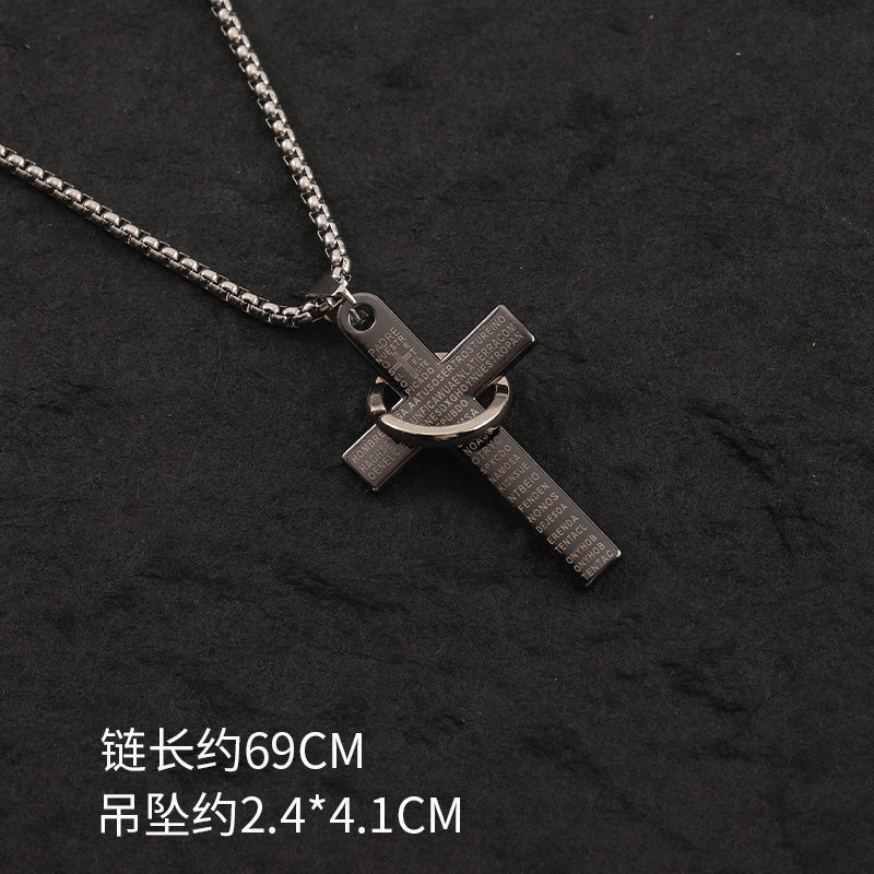 Cross Border European and American Letter Cross Ring Titanium Steel Necklace Stainless Steel Hip Hop Punk Long Necklace Men's and Women's sweater chain