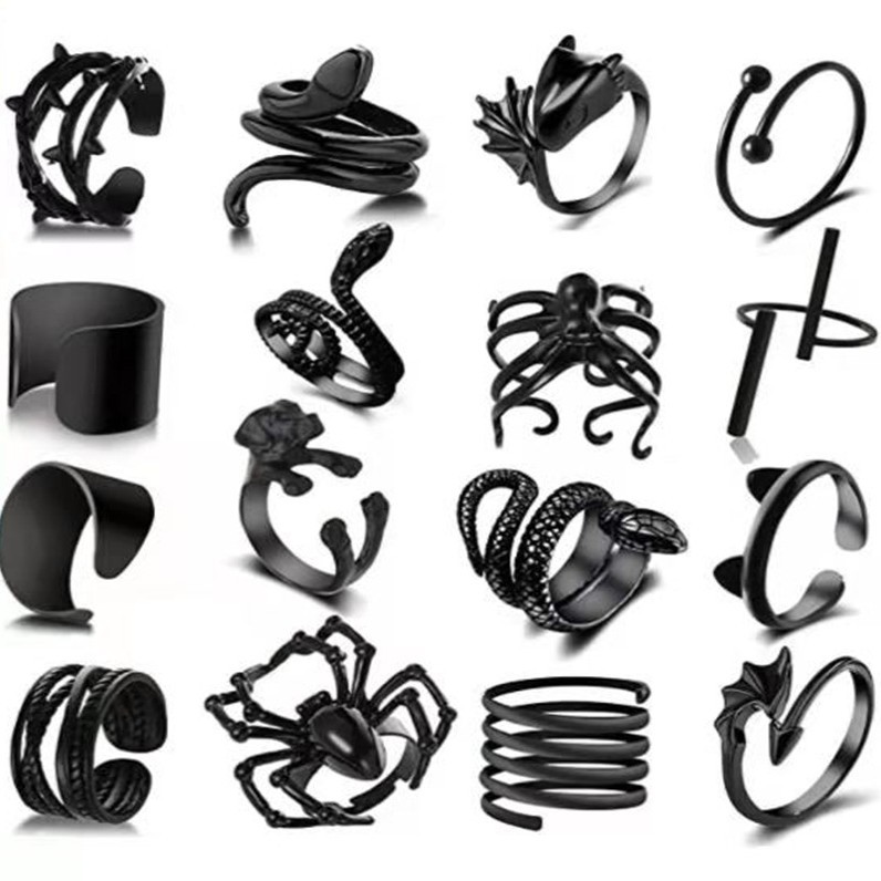 Amazon European and American Cross-Border Black Rings Personalized Cross-Opening Animal Rings for Men and Women Creative Index Finger Rings