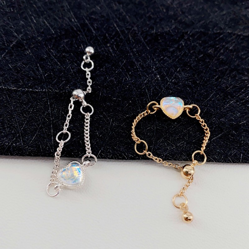 New Colorful Gradient Love Moonstone Ring Size Adjustable Pull-Out Bare Chain Heart-Shaped Index Finger Ring for Women