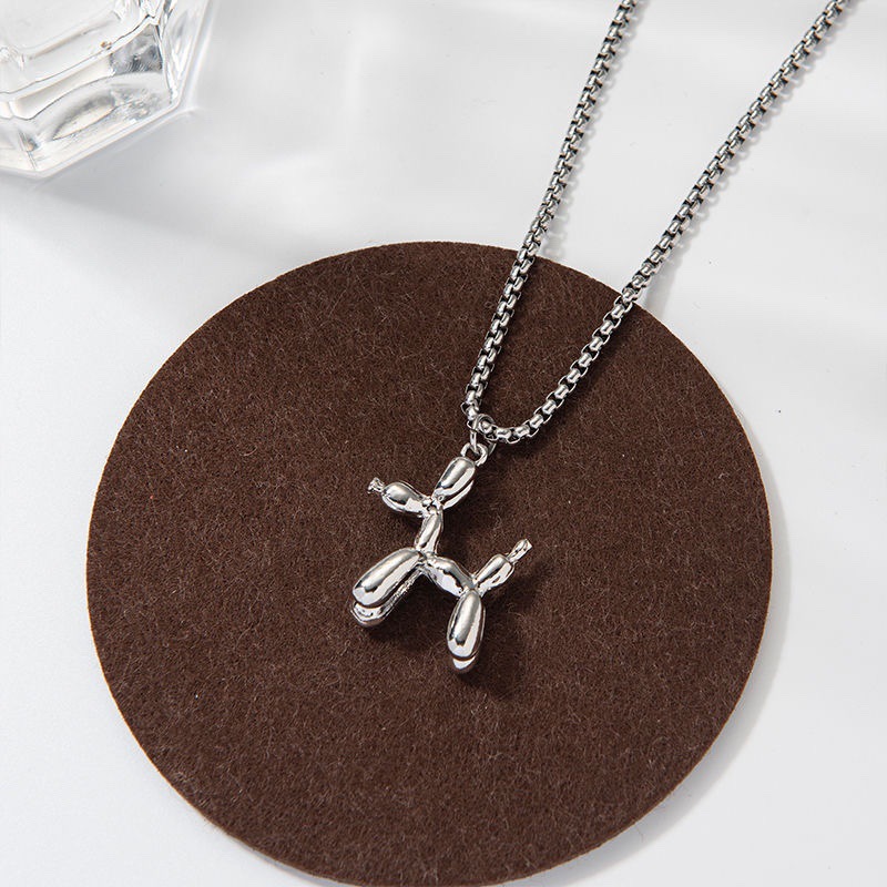 New Style Simple Balloon Puppy Necklace Trendy Men's and Women's Pendant Soil Cool Tie Tie Titanium Steel Personalized Woolen Chain Couple Necklace